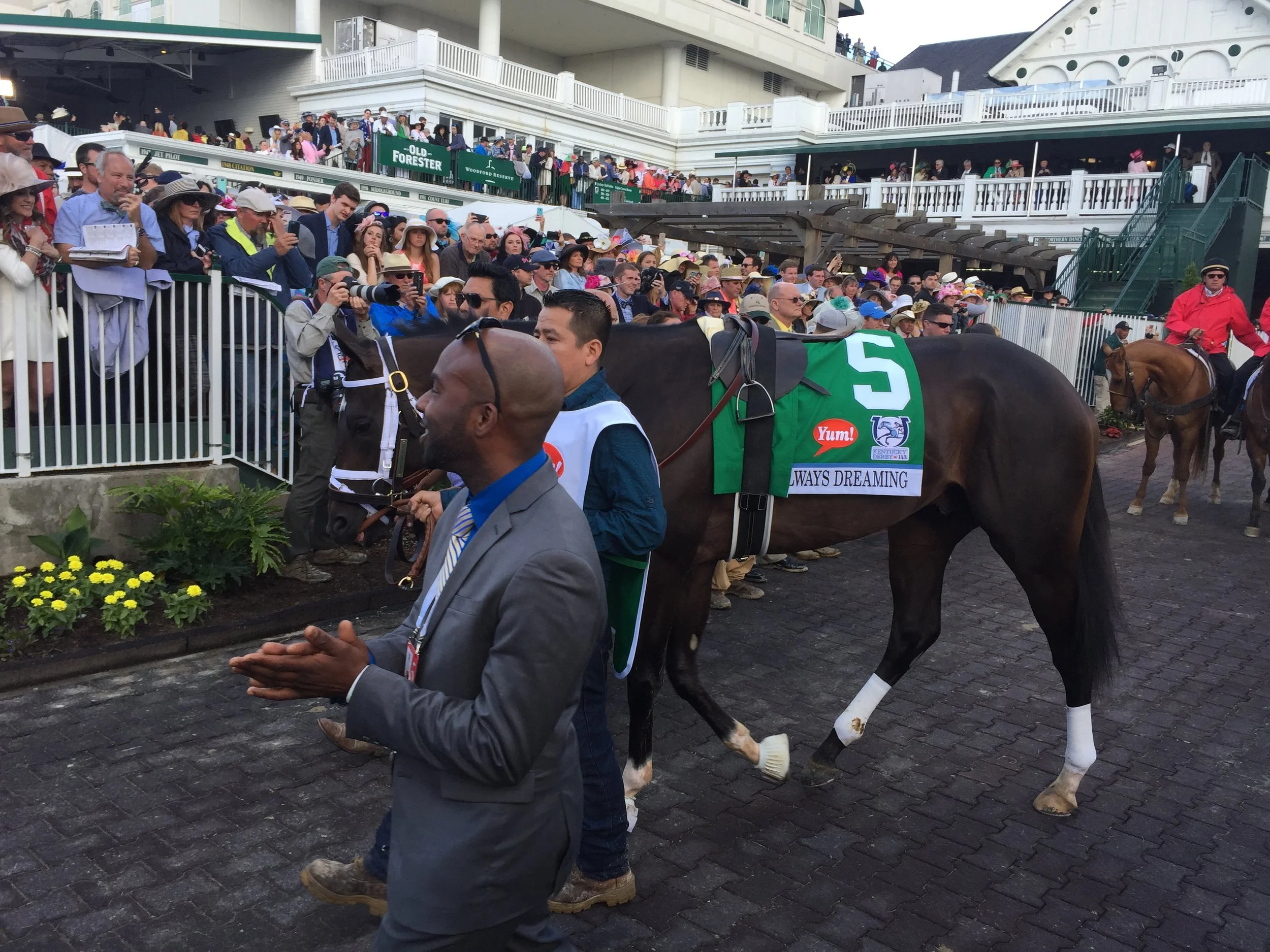 The hype surrounding Always Dreaming was legitimate. I stopped by the barn Derby Eve morning, and there he was, relaxing at the front of his stall, eyes heavily blinking away a bid for more sleep. I mused that he was aptly named. The meaning behind the name, however, goes beyond a literal reverie.